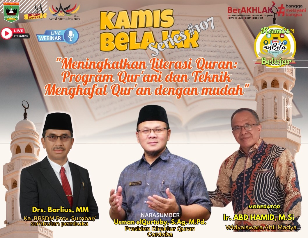 Press Release. Alhamdulillah Kolaborasi webinar BPSDM SUMBAR dan Cordoba bertajuk "Meningkatkan Literasi Qur'an: Program Qur’ani dan Teknik Menghafal Qur'an dengan Mudah” sukses terlaksana di kamis belajar series #107.